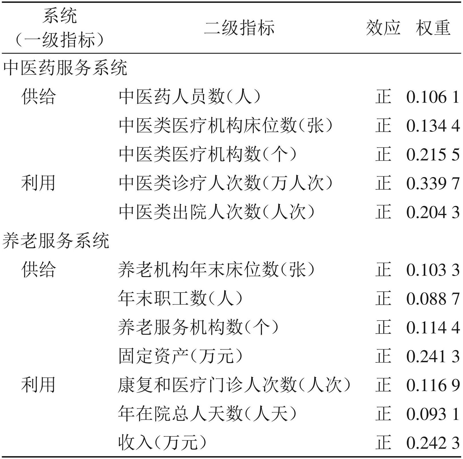 表1中医药服务与养老服务系统综合评价指标体系