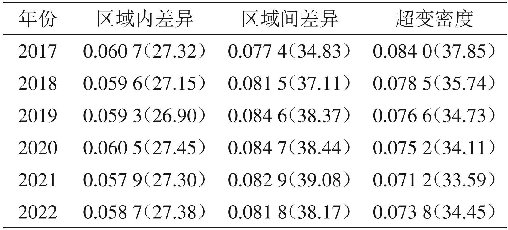 表4区域差异及贡献率(%)
