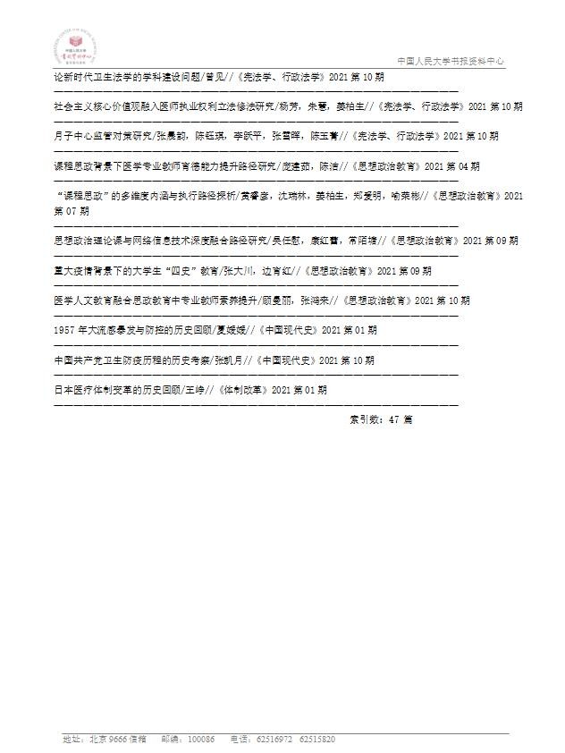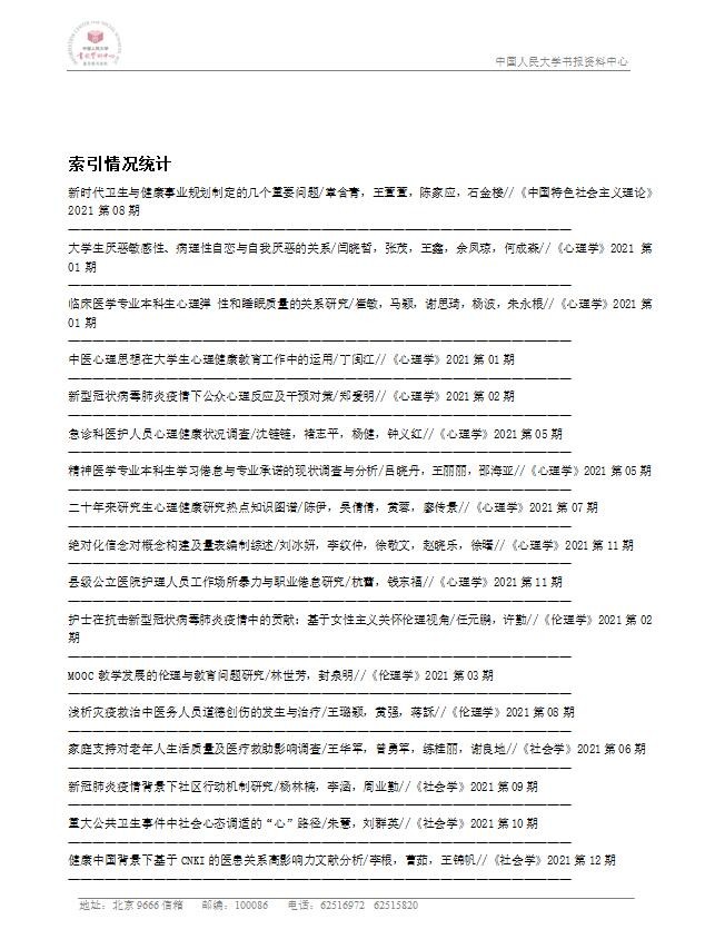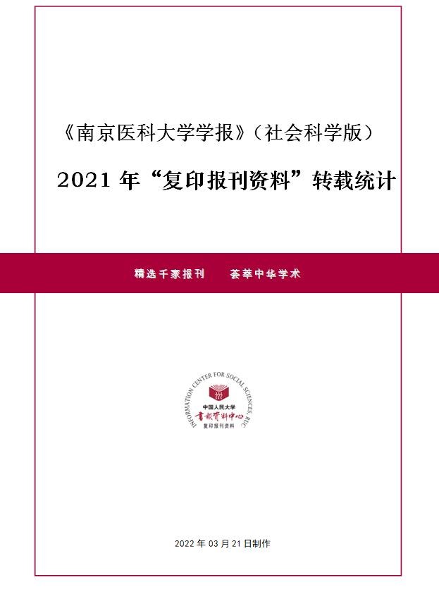 近期,中国人民大学书报资料中心发布了《南京医科大学学报(社会科学版)》2021年度的转载统计,本刊共计47篇论文被转载。此转载统计报告的论文统计范围为:复印报刊资料系列期刊及人文社科文摘系列期刊的全部转载(摘)数据。