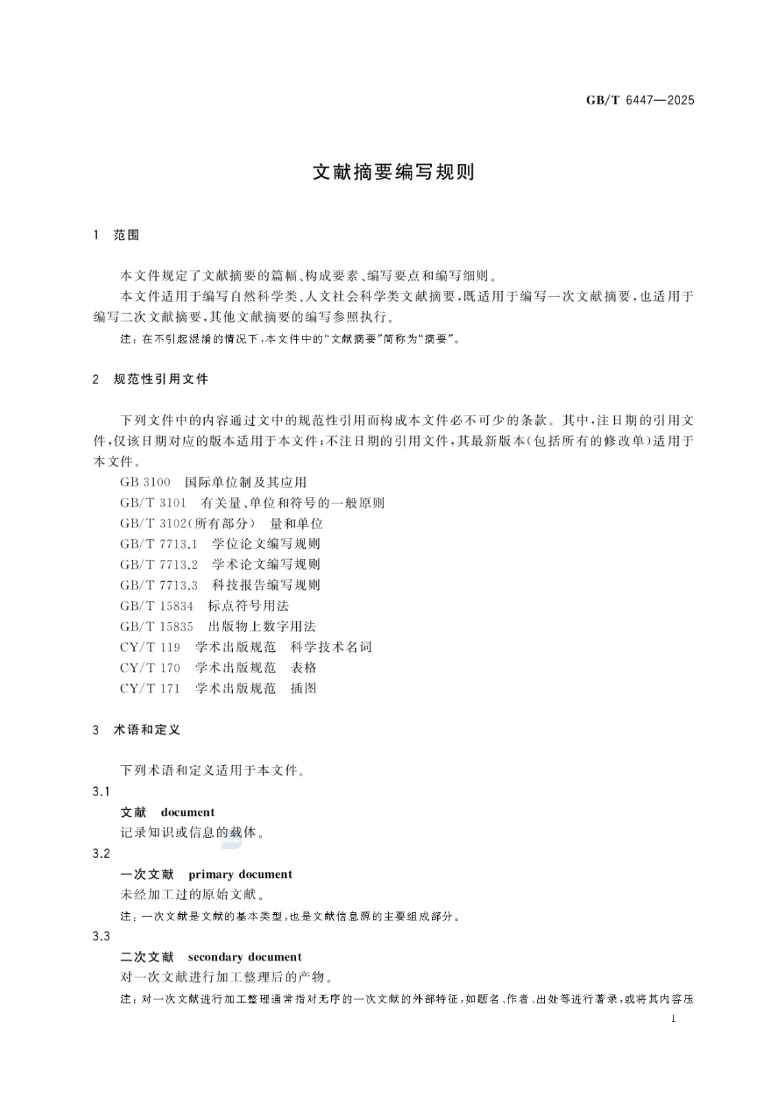 新版《文献摘要编写规则》(GB/T 6447—2025)