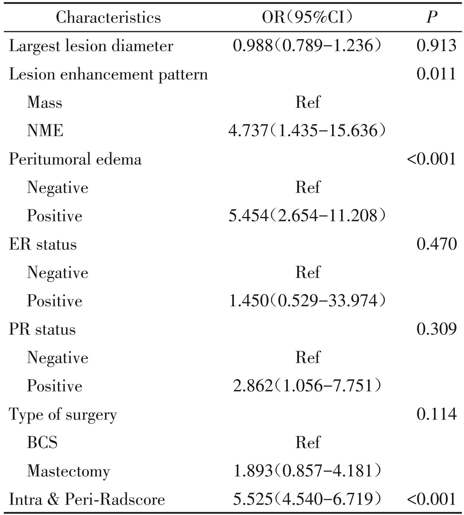 ALN:axillary lymph node;OR:odds ratio;CI:confidence interval; NME:non⁃mass enhancement;BCS:breast⁃conserving surgery.