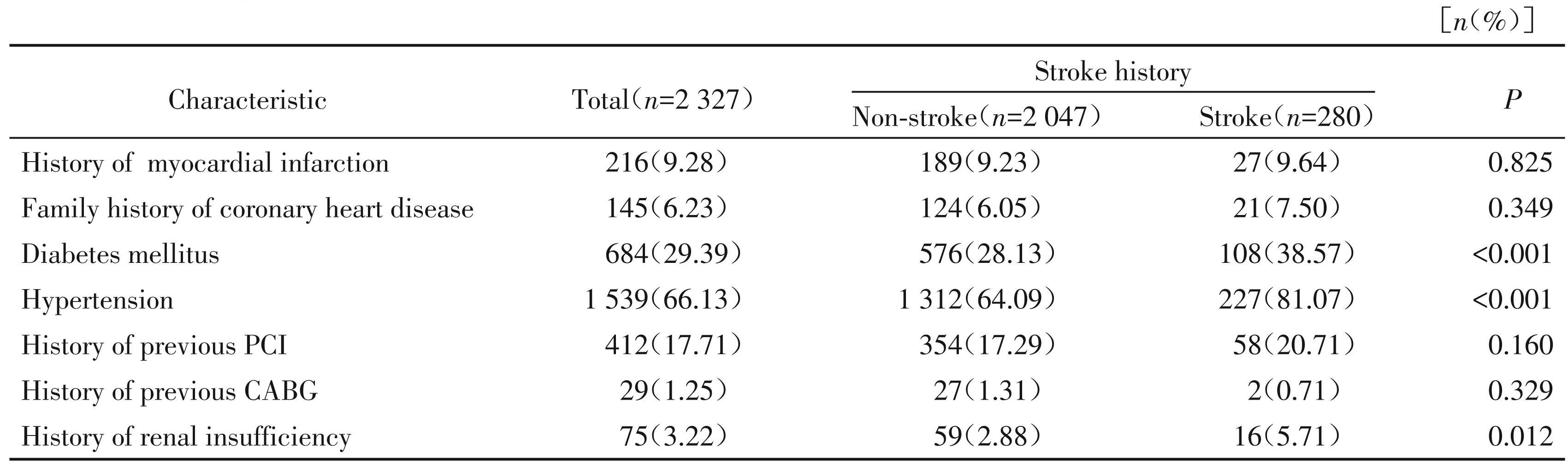 Table3Comparison of medical history between stroke and non⁃stroke groups in patients with coronary heart disease
