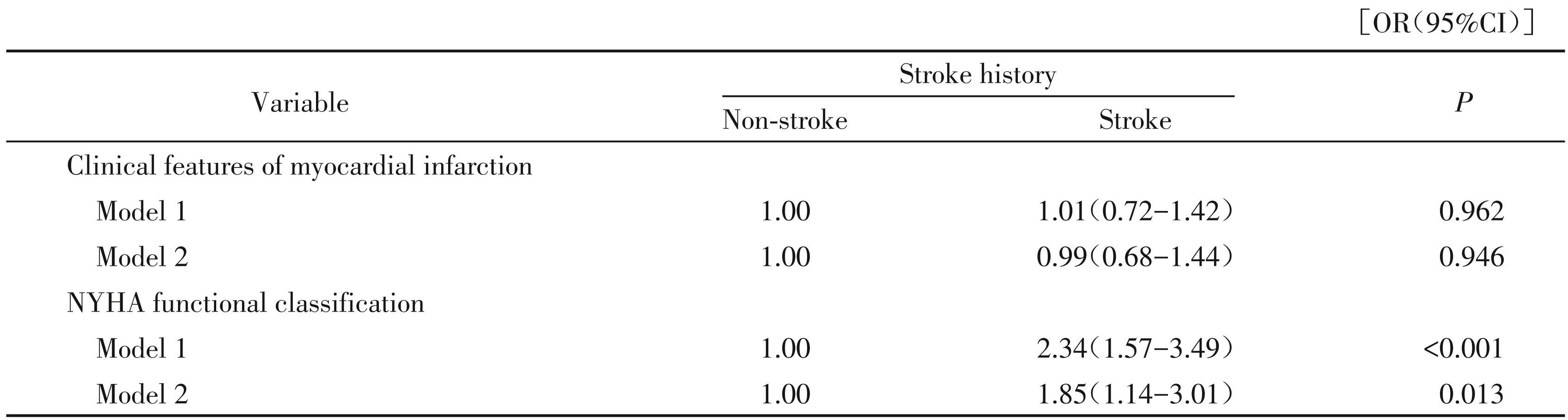 2.2 脑卒中既往史与冠心病患者临床表现的多因素Logistic回归分析