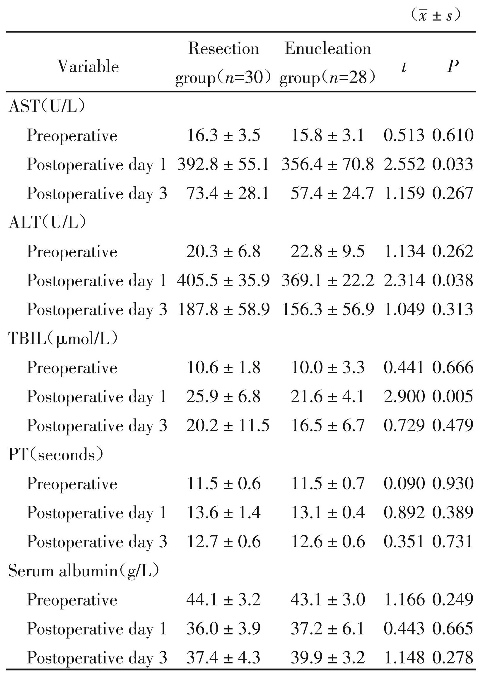 Table3Comparison of liver function indicators before and after surgery between the two groups