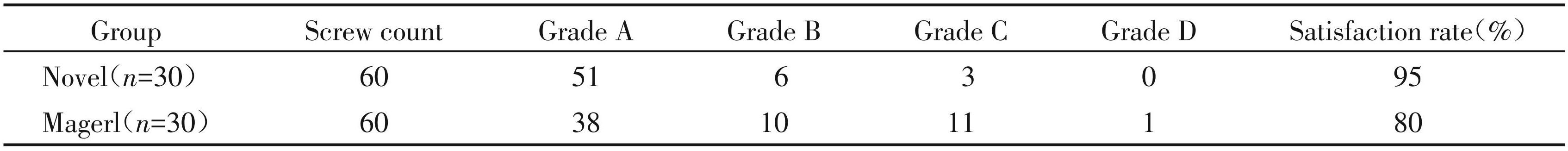 Table3Comparison of accuracy and satisfaction of L5 pedicle screw placement in the two groups