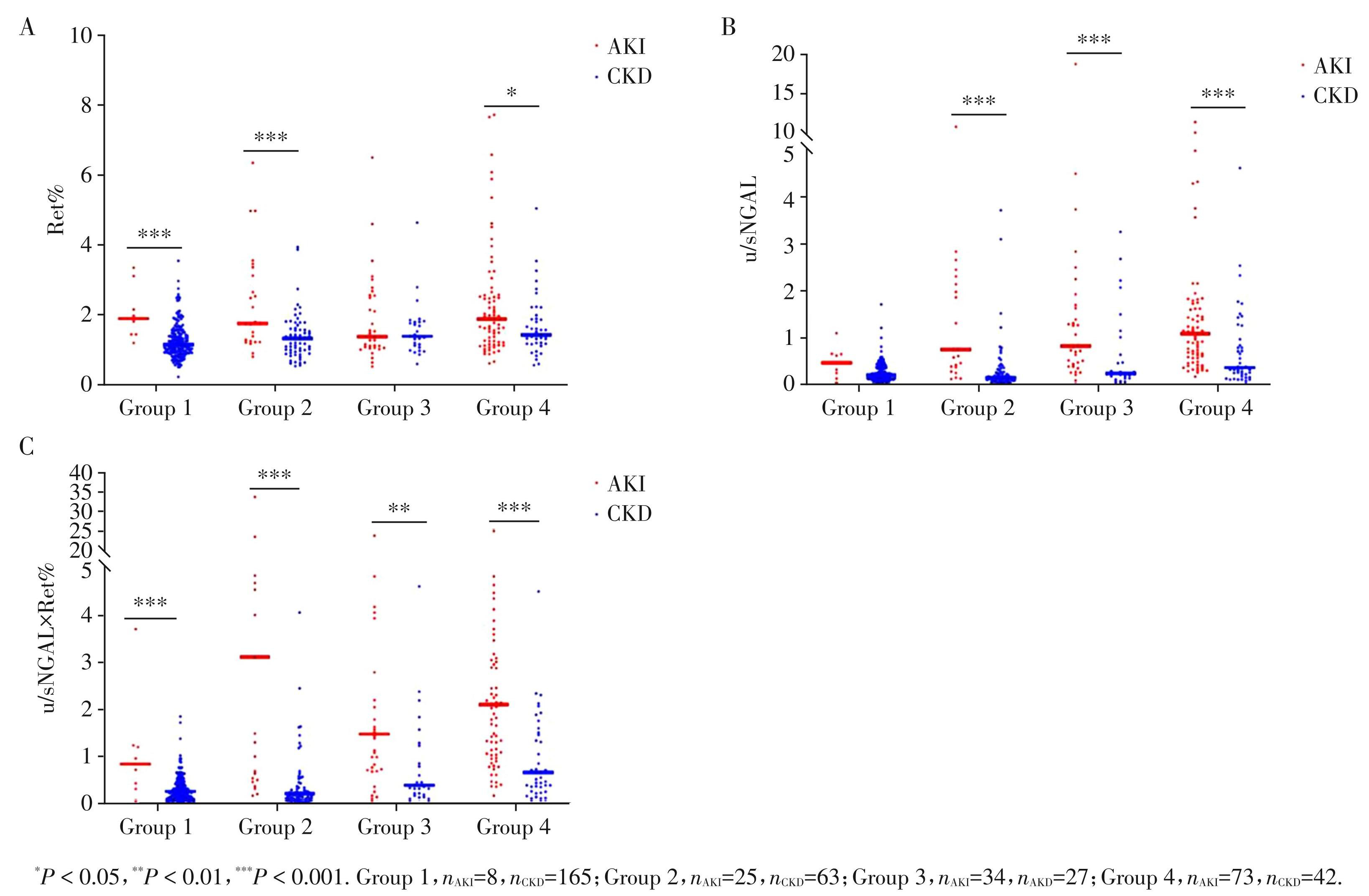 Compared to the u/sNGAL×Ret%,* P <0.05,***P <0.01.